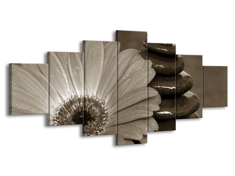 Glasschilderij Bloem, Stenen | Sepia | 210x100cm 7Luik