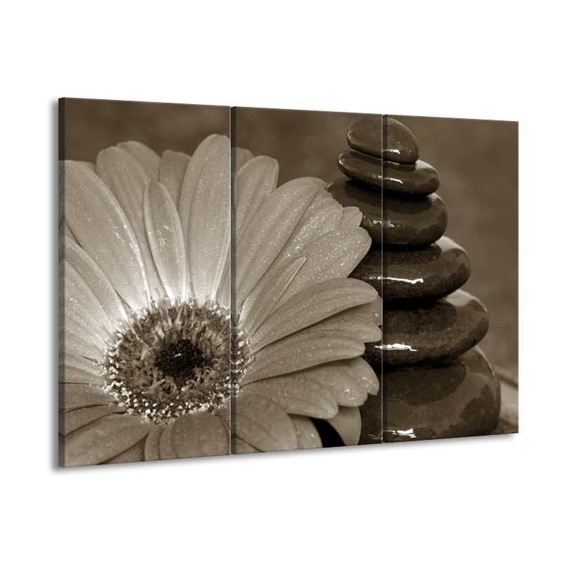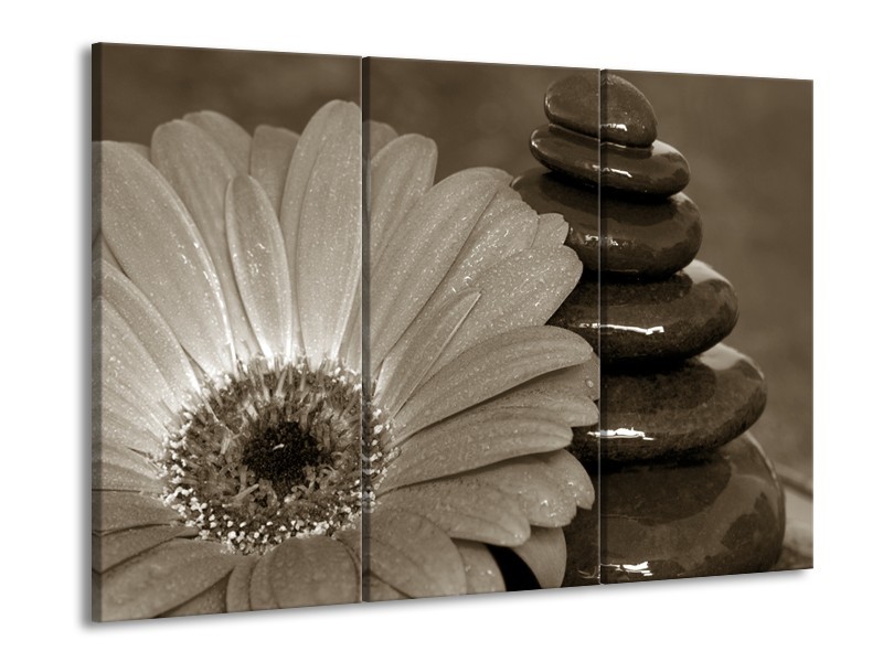 Glasschilderij Bloem, Stenen | Sepia | 60x90cm 3Luik