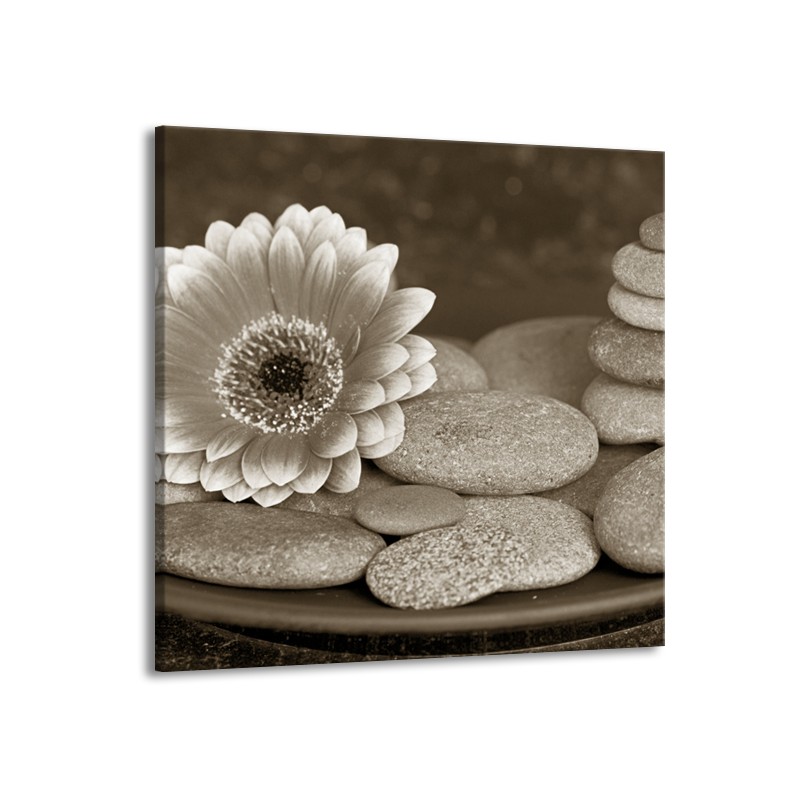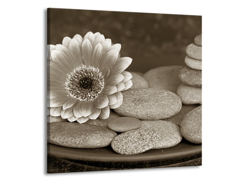Glasschilderij Bloem, Stenen | Sepia | 70x70cm 1Luik