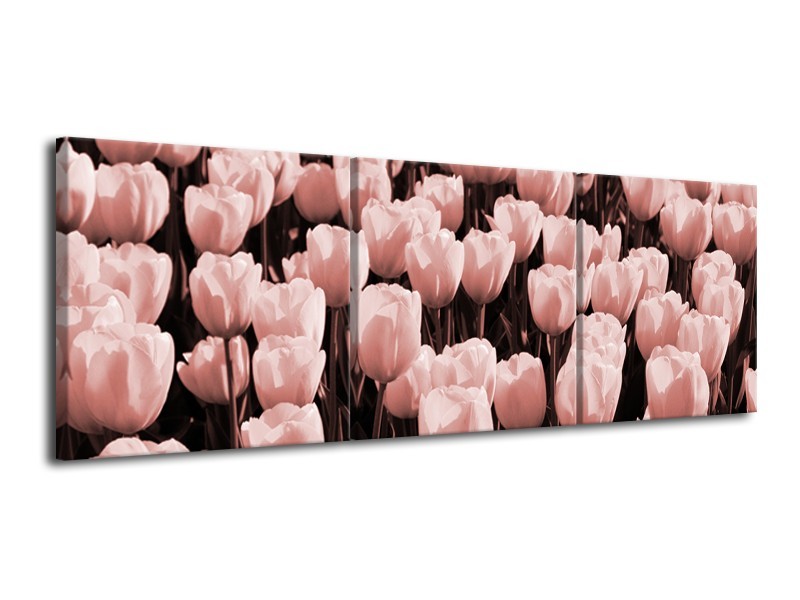 Glasschilderij Bloem, Tulpen | Bruin, Rood | 120x40cm 3Luik