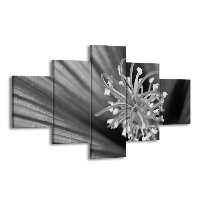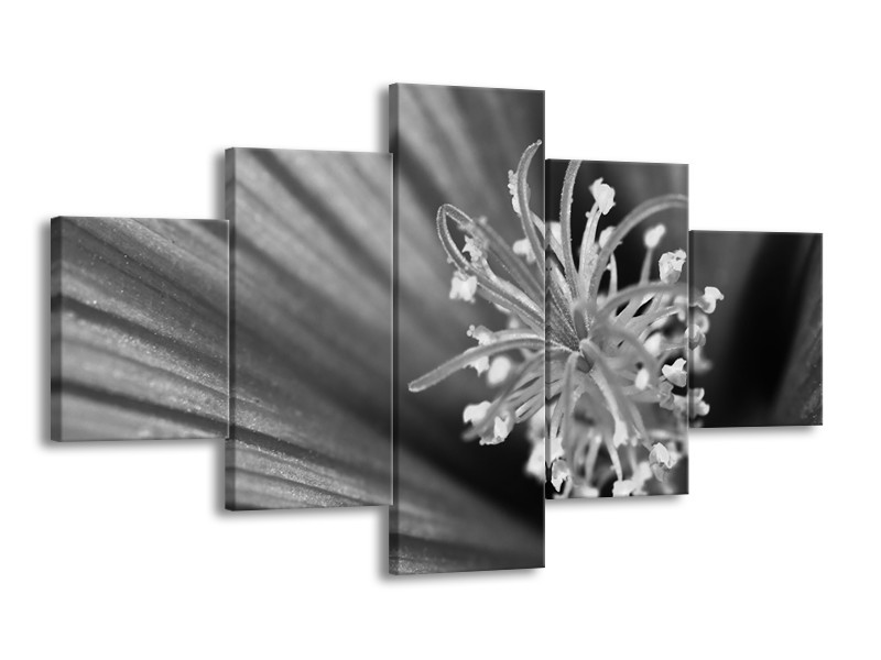 Glasschilderij Bloem | Zwart, Grijs, Wit | 125x70cm 5Luik
