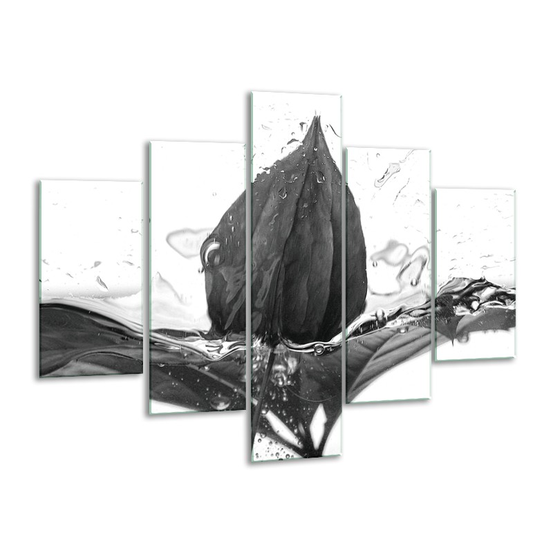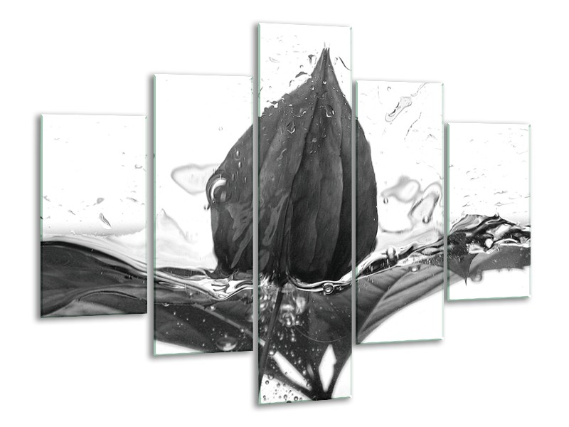 Glasschilderij Bloem | Zwart, Wit, Grijs | 100x70cm 5Luik