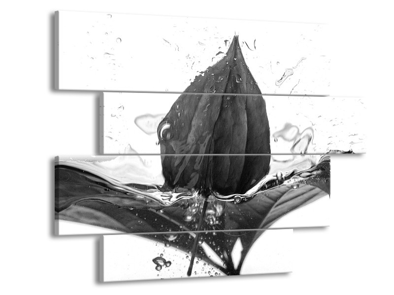 Glasschilderij Bloem | Zwart, Wit, Grijs | 115x85cm 4Luik