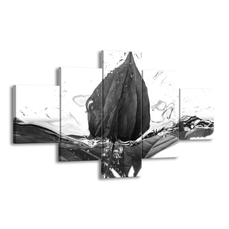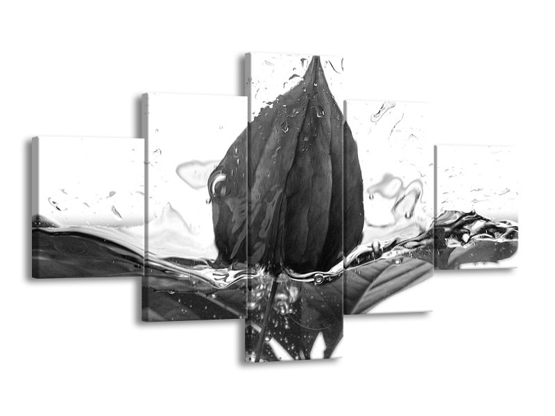Glasschilderij Bloem | Zwart, Wit, Grijs | 125x70cm 5Luik