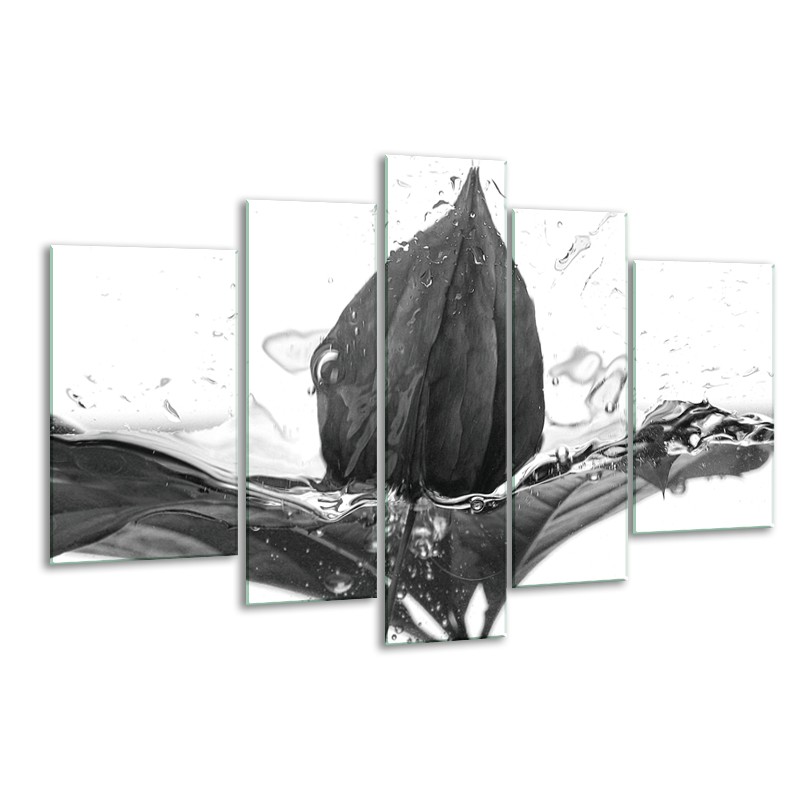 Glasschilderij Bloem | Zwart, Wit, Grijs | 170x100cm 5Luik