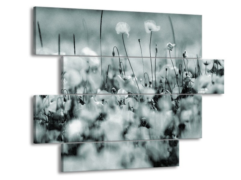 Glasschilderij Bloemen | Grijs, Zwart, Groen | 115x85cm 4Luik