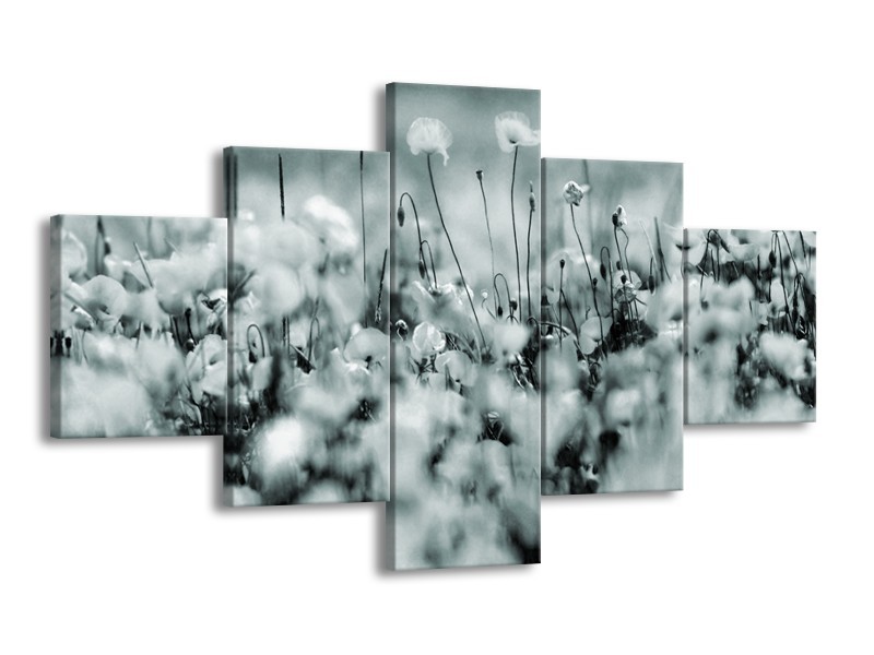 Glasschilderij Bloemen | Grijs, Zwart, Groen | 125x70cm 5Luik