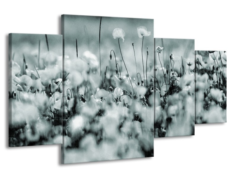Glasschilderij Bloemen | Grijs, Zwart, Groen | 160x90cm 4Luik