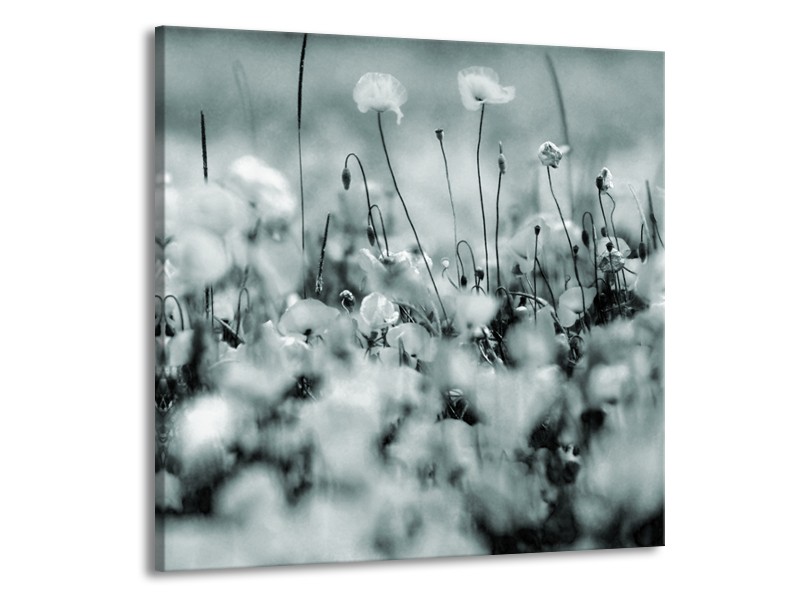 Glasschilderij Bloemen | Grijs, Zwart, Groen | 70x70cm 1Luik