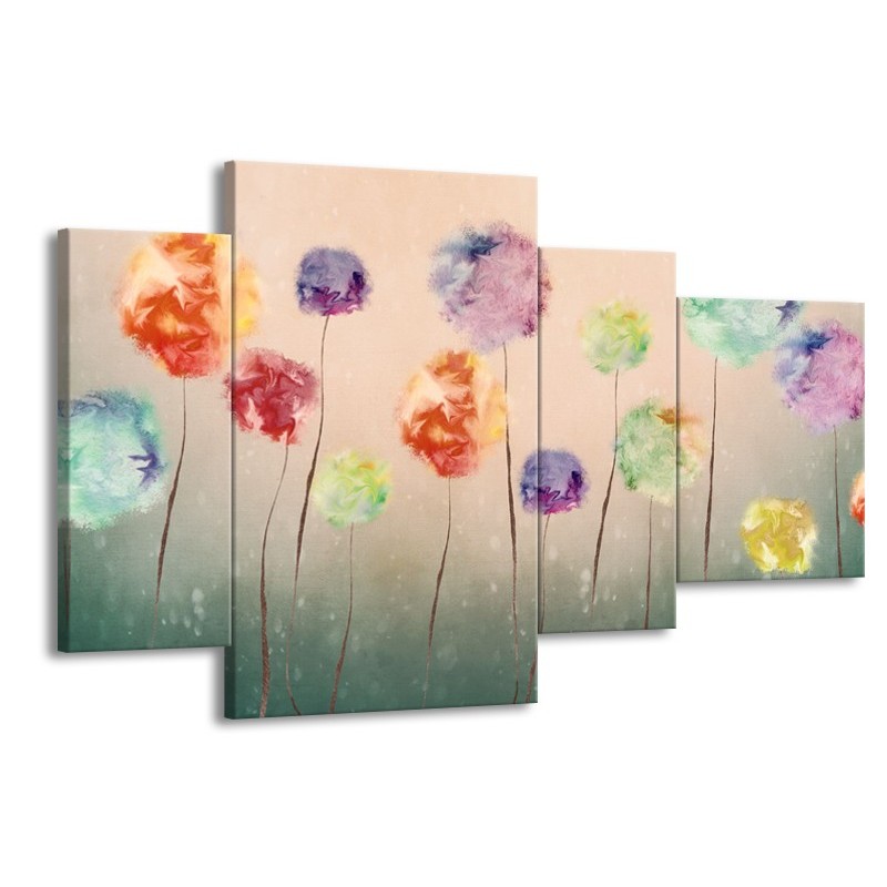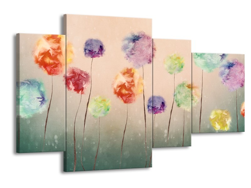 Glasschilderij Bloemen | Groen, Crème | 120x75cm 4Luik