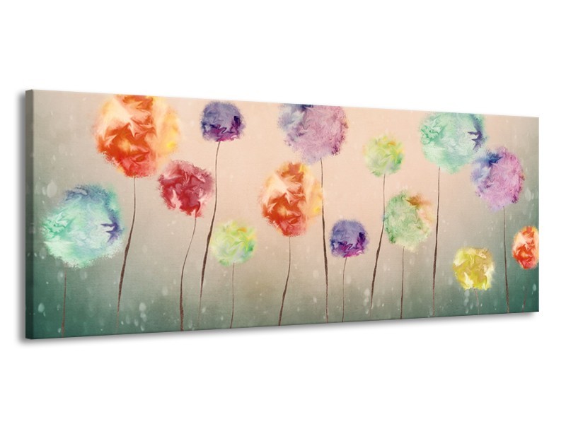 Glasschilderij Bloemen | Groen, Crème | 145x58cm 1Luik