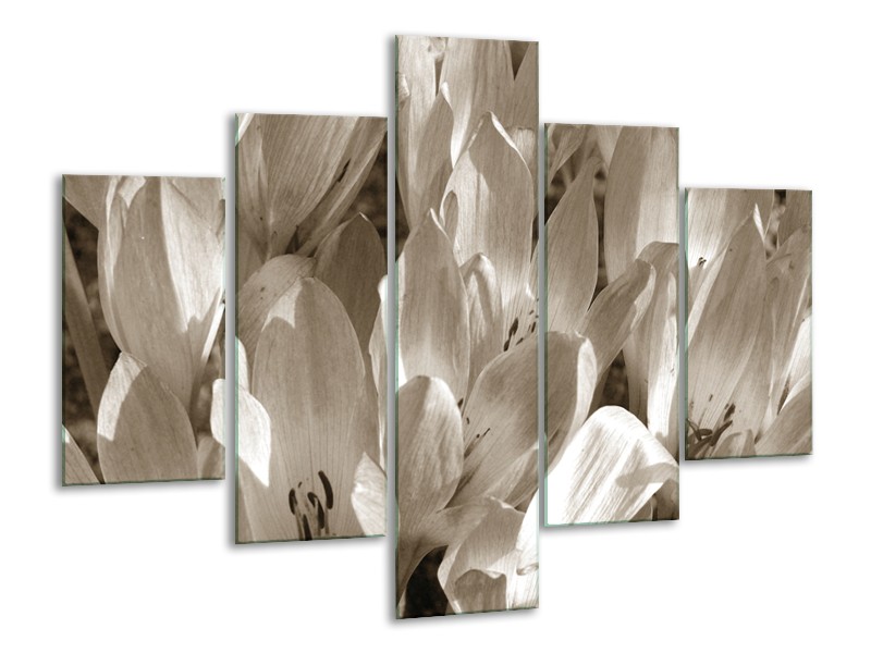 Glasschilderij Bloemen, Krokus | Sepia | 100x70cm 5Luik