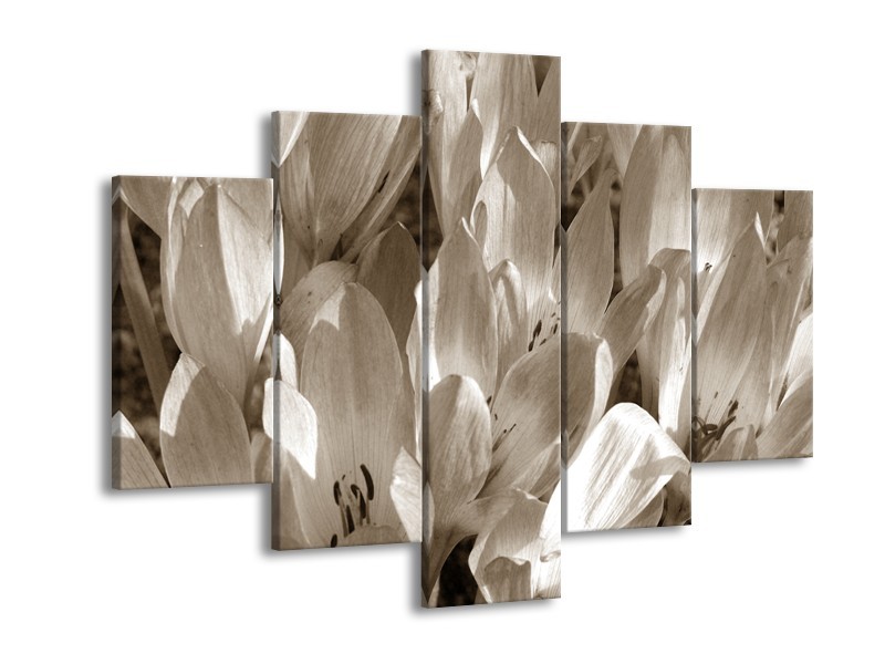Glasschilderij Bloemen, Krokus | Sepia | 150x105cm 5Luik
