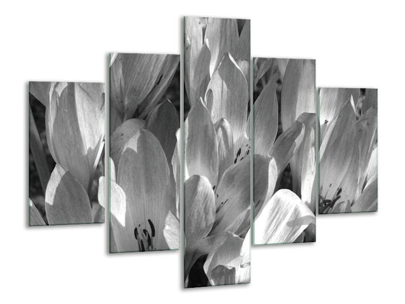 Glasschilderij Bloemen, Krokus | Zwart, Grijs | 100x70cm 5Luik