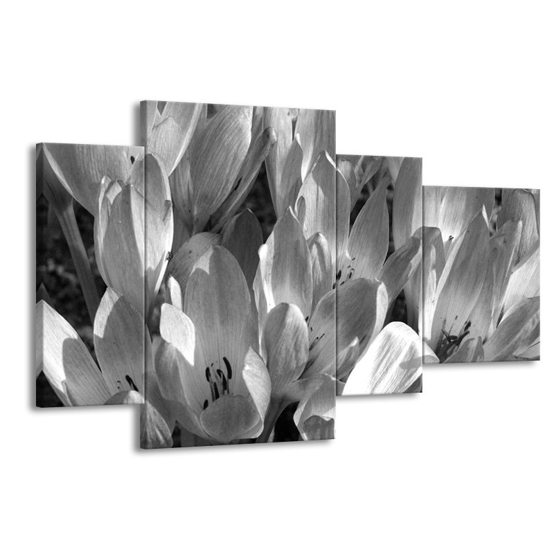Glasschilderij Bloemen, Krokus | Zwart, Grijs | 120x75cm 4Luik