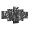 Glasschilderij Bloemen, Lente | Zwart, Grijs, Wit | 125x70cm 5Luik