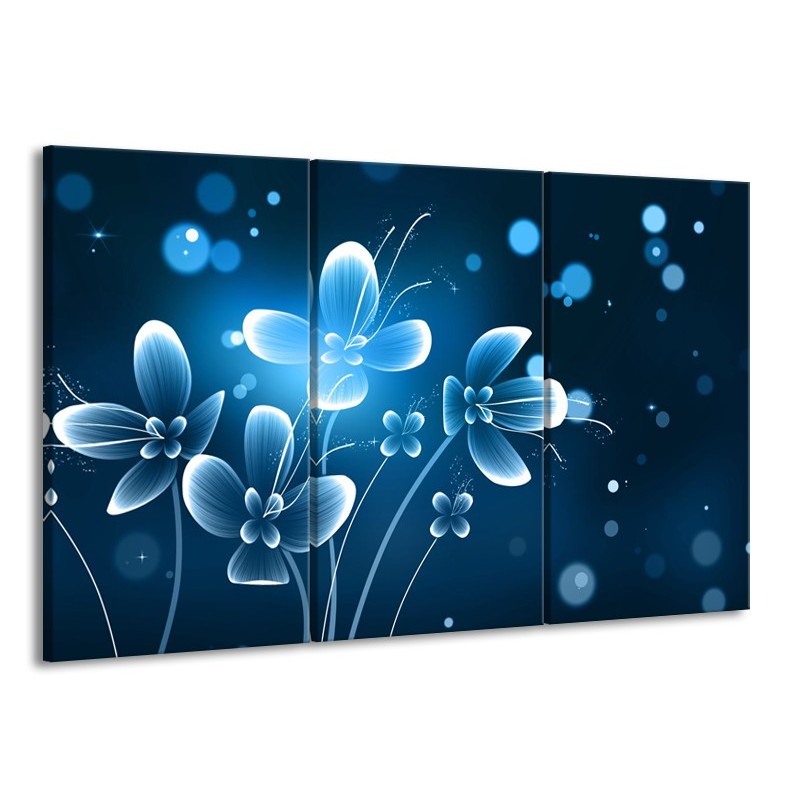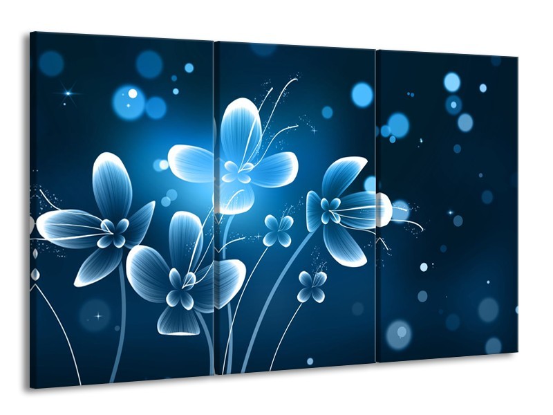 Glasschilderij Bloemen, Modern | Blauw, Wit | 165x100cm 3Luik