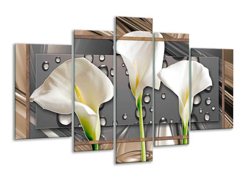 Glasschilderij Bloemen, Modern | Grijs, Bruin | 170x100cm 5Luik