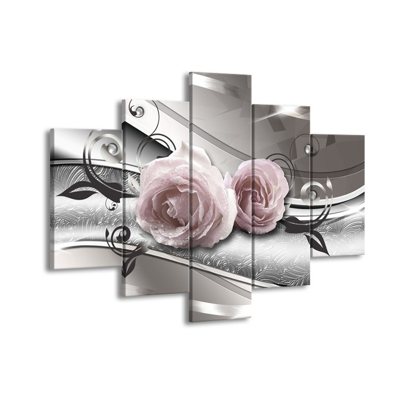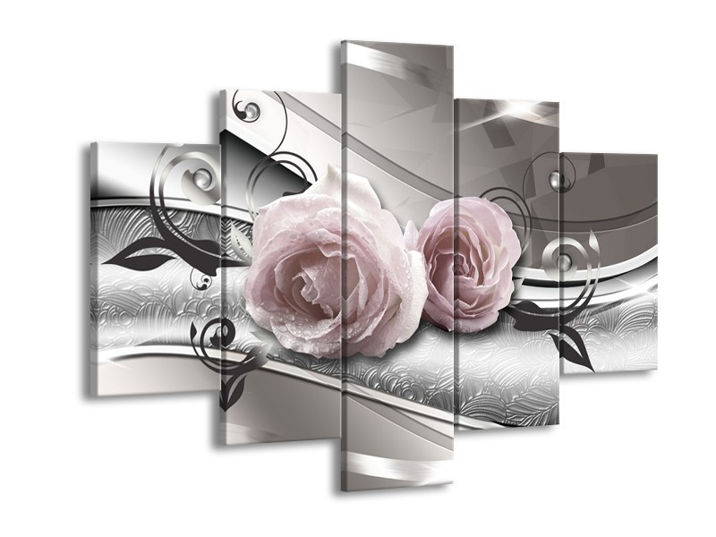 Glasschilderij Bloemen, Modern | Grijs, Roze | 150x105cm 5Luik