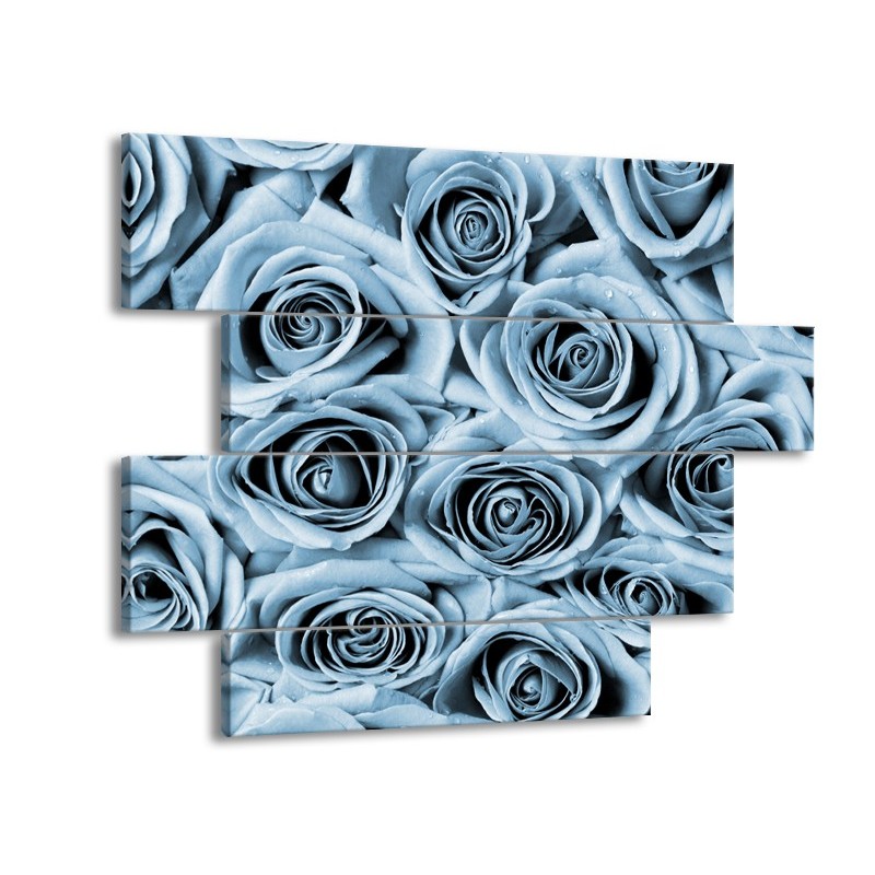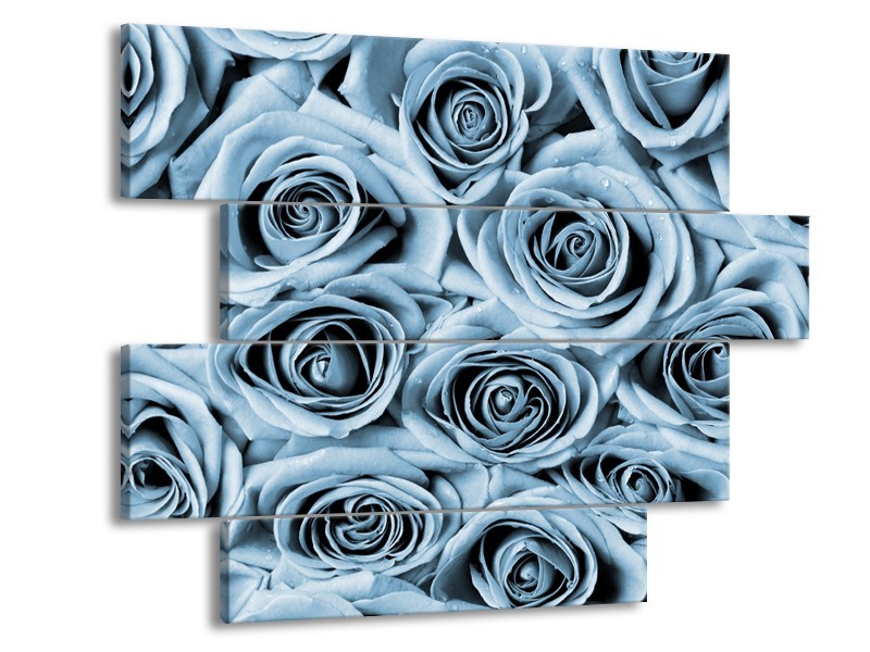 Glasschilderij Bloemen, Roos | Blauw, Grijs | 115x85cm 4Luik