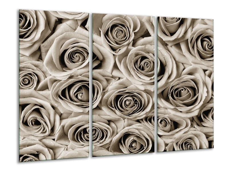 Glasschilderij Bloemen, Roos | sepia | 120x80cm 3Luik