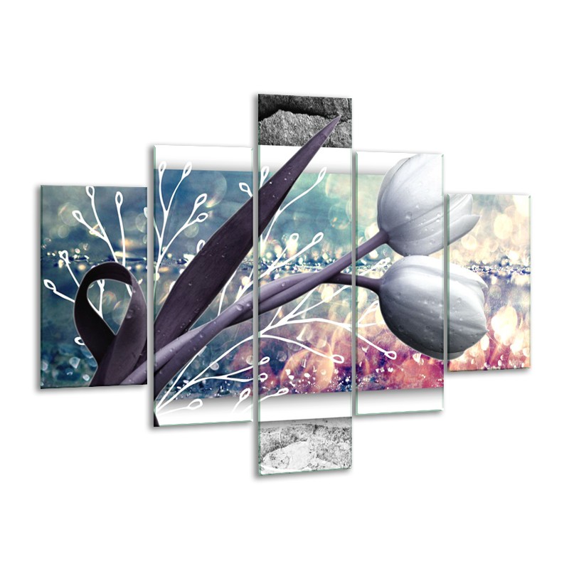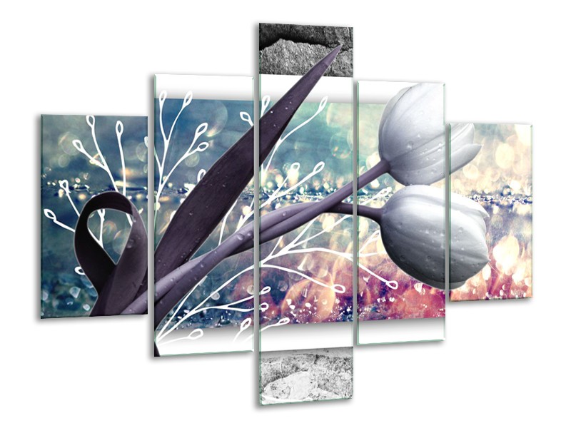 Glasschilderij Bloemen, Tulpen | Grijs | 100x70cm 5Luik