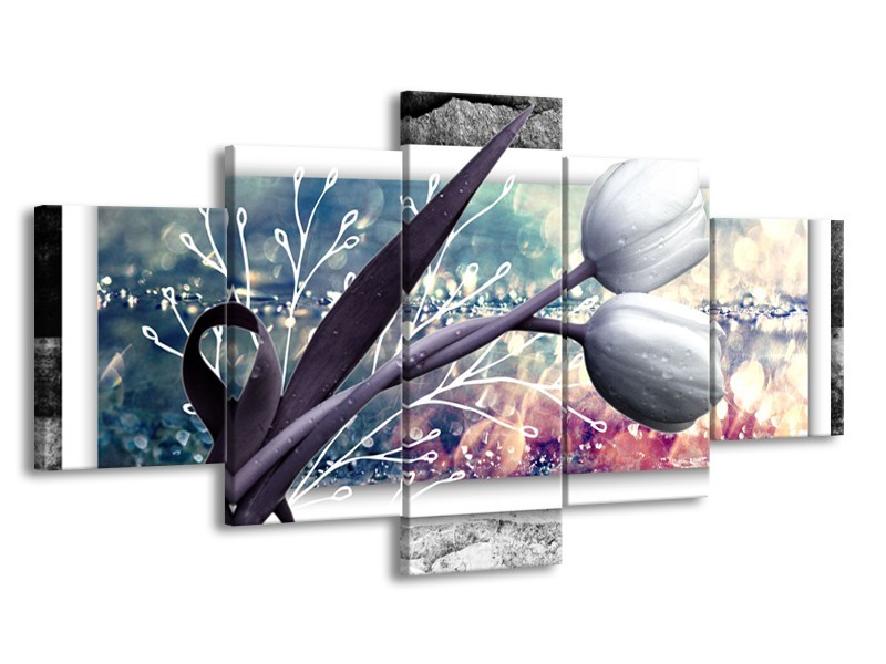 Glasschilderij Bloemen, Tulpen | Grijs | 150x80cm 5Luik