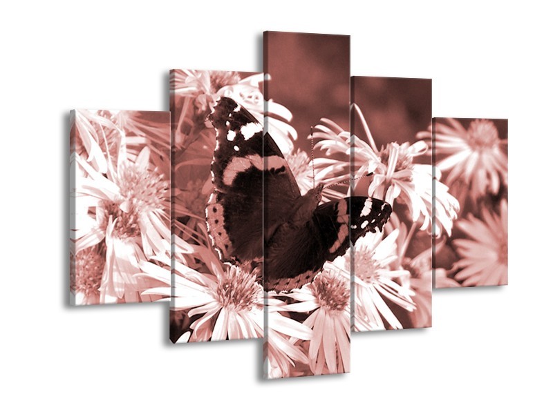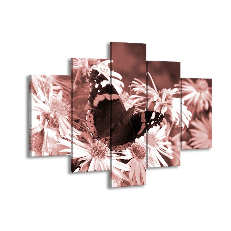 Glasschilderij Bloemen, Vlinder | Bruin, Rood, Zwart | 150x105cm 5Luik
