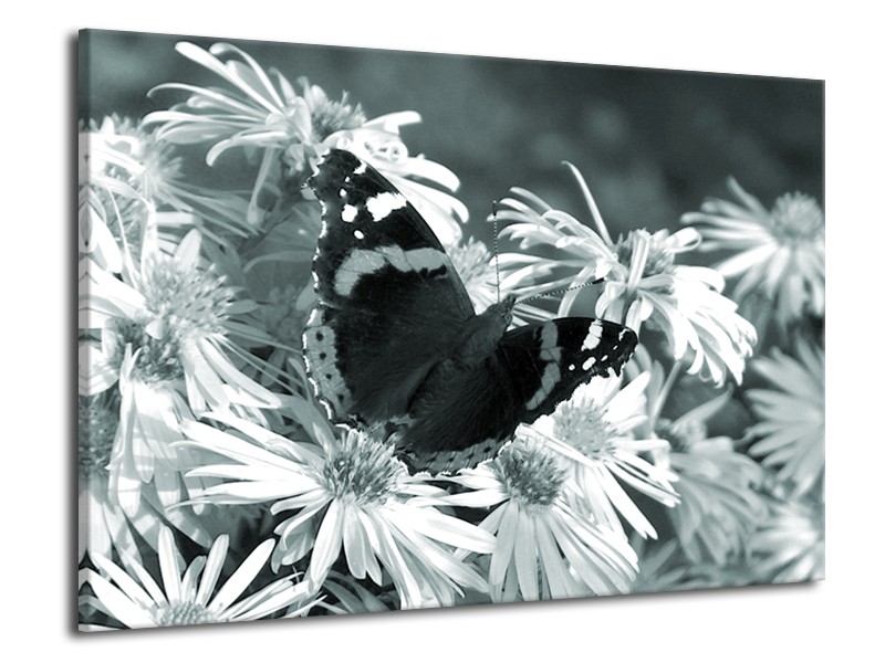Glasschilderij Bloemen, Vlinder | Grijs, Groen, Zwart | 70x50cm 1Luik