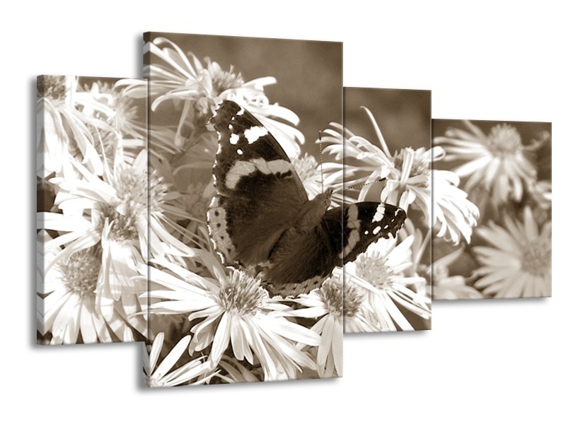 Glasschilderij Bloemen, Vlinder | Sepia, Bruin | 120x75cm 4Luik