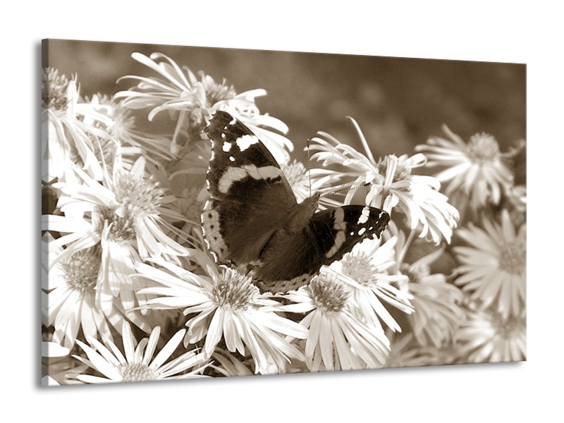 Glasschilderij Bloemen, Vlinder | Sepia, Bruin | 140x90cm 1Luik