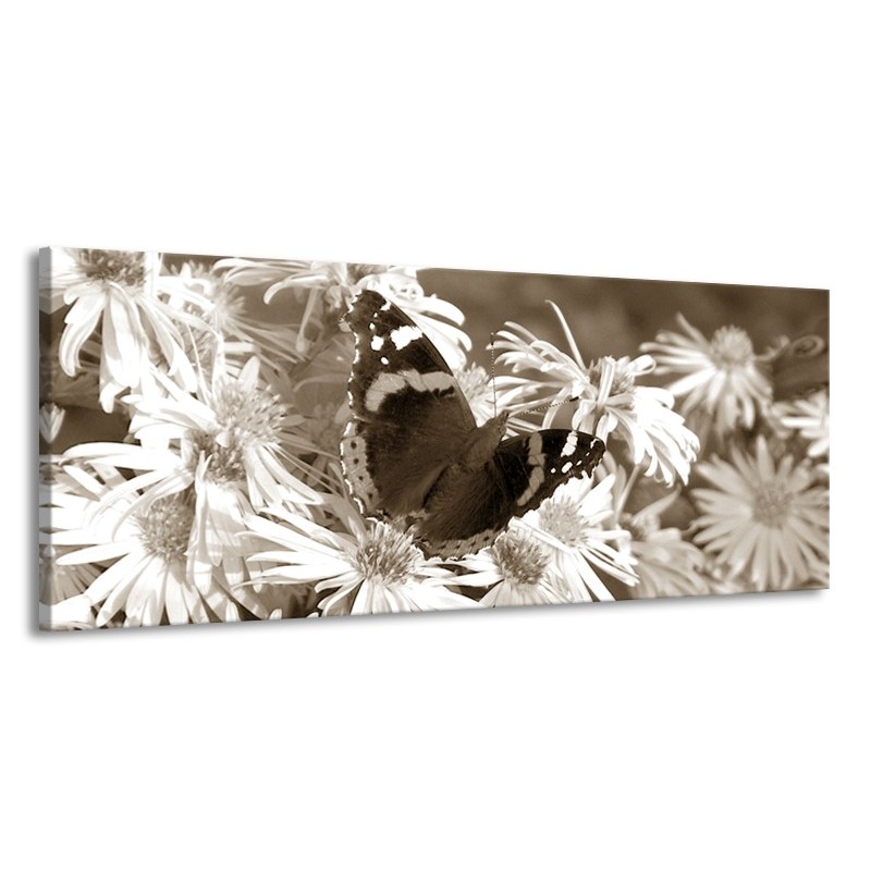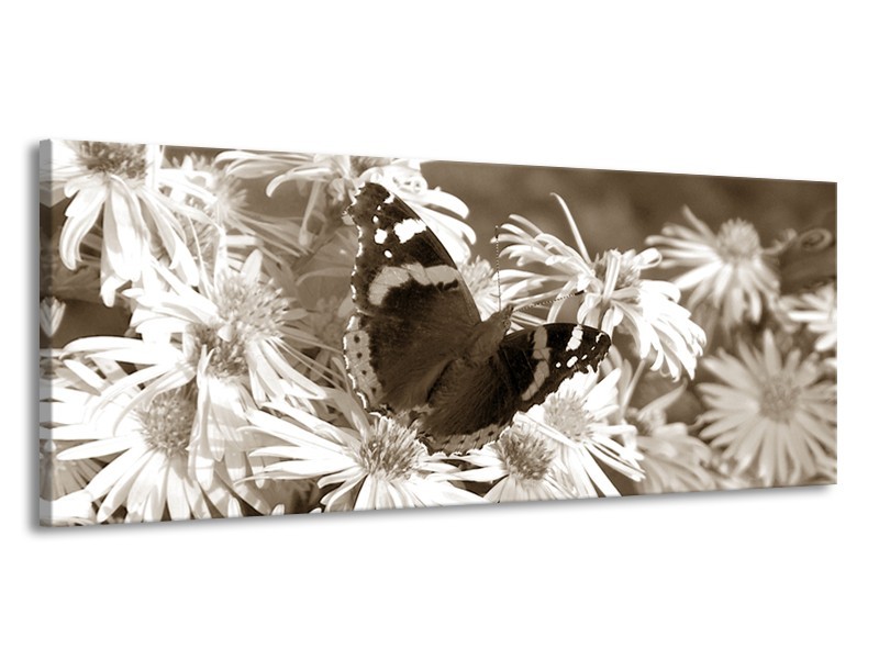 Glasschilderij Bloemen, Vlinder | Sepia, Bruin | 145x58cm 1Luik