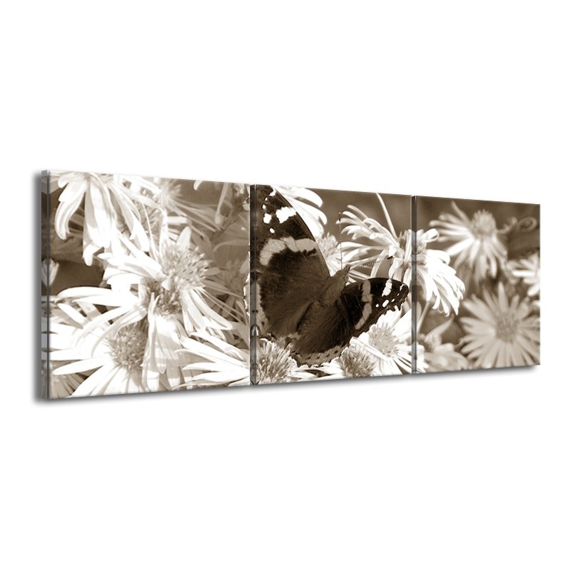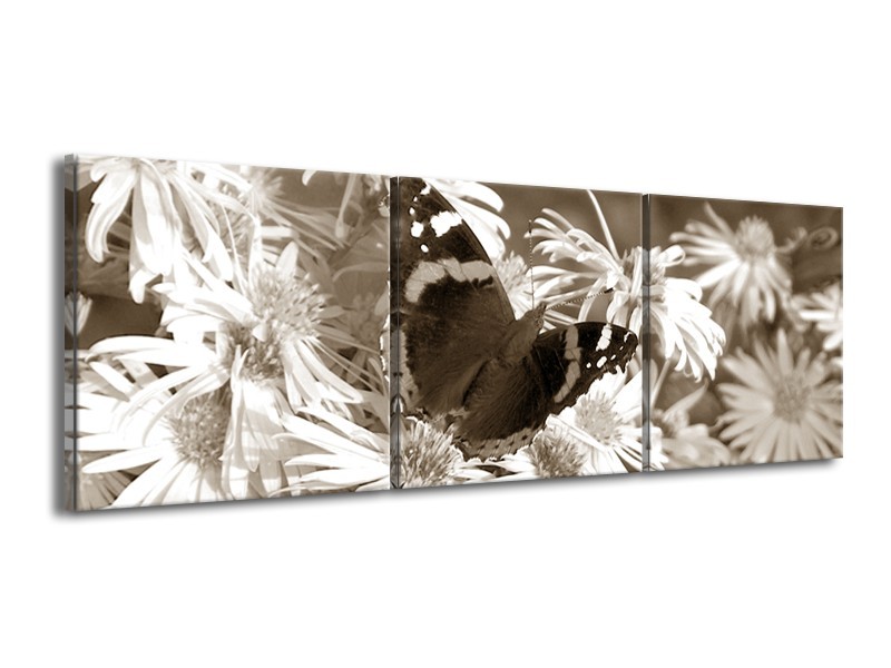 Glasschilderij Bloemen, Vlinder | Sepia, Bruin | 150x50cm 3Luik