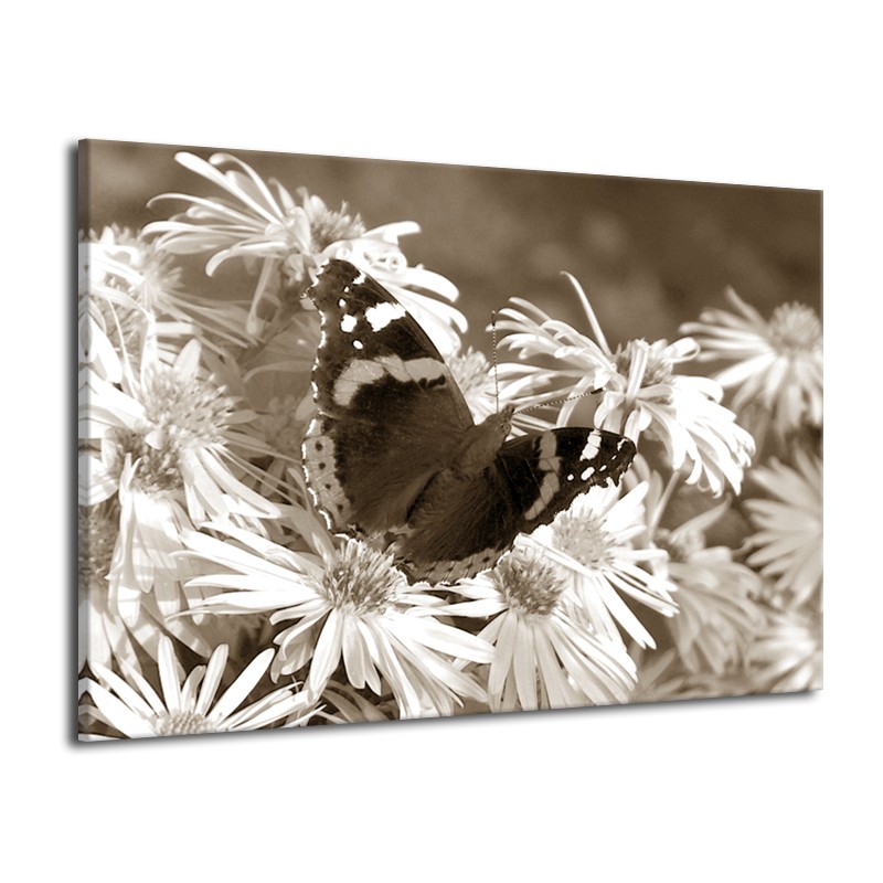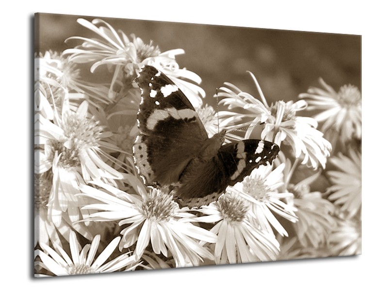 Glasschilderij Bloemen, Vlinder | Sepia, Bruin | 70x50cm 1Luik