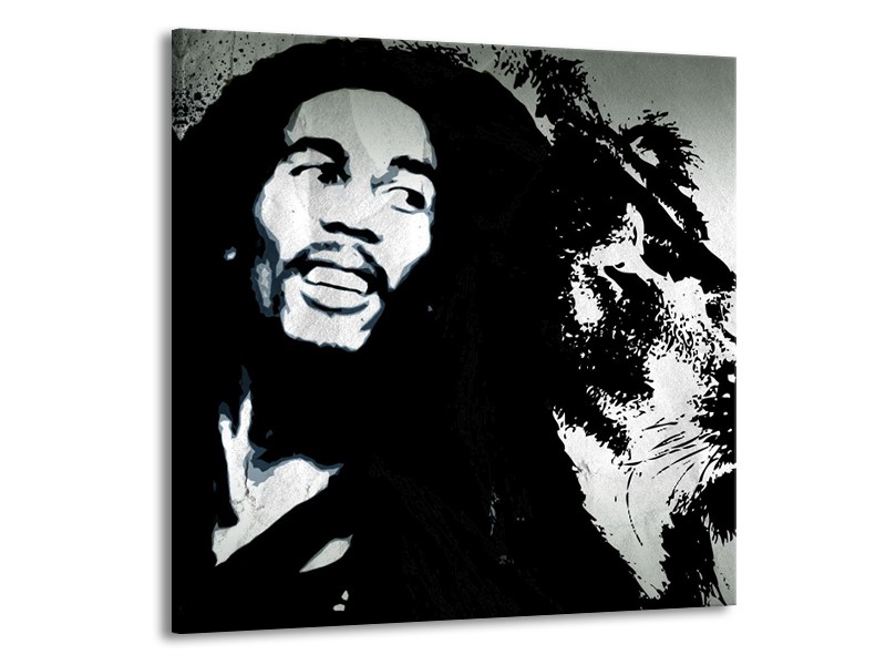 Glasschilderij Bob Marley | Zwart, Wit | 70x70cm 1Luik