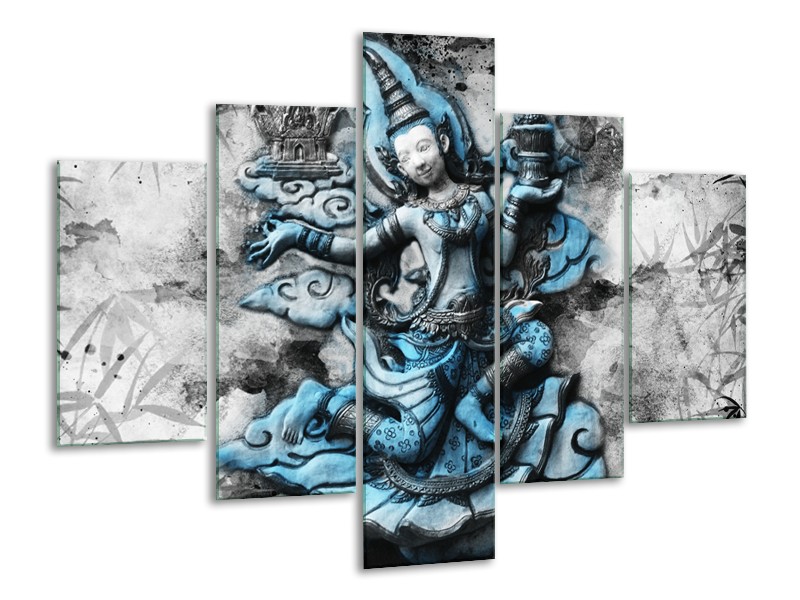 Glasschilderij Boeddha, Beeld | Blauw, Grijs, Zwart | 100x70cm 5Luik