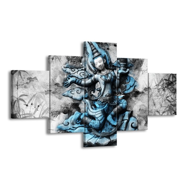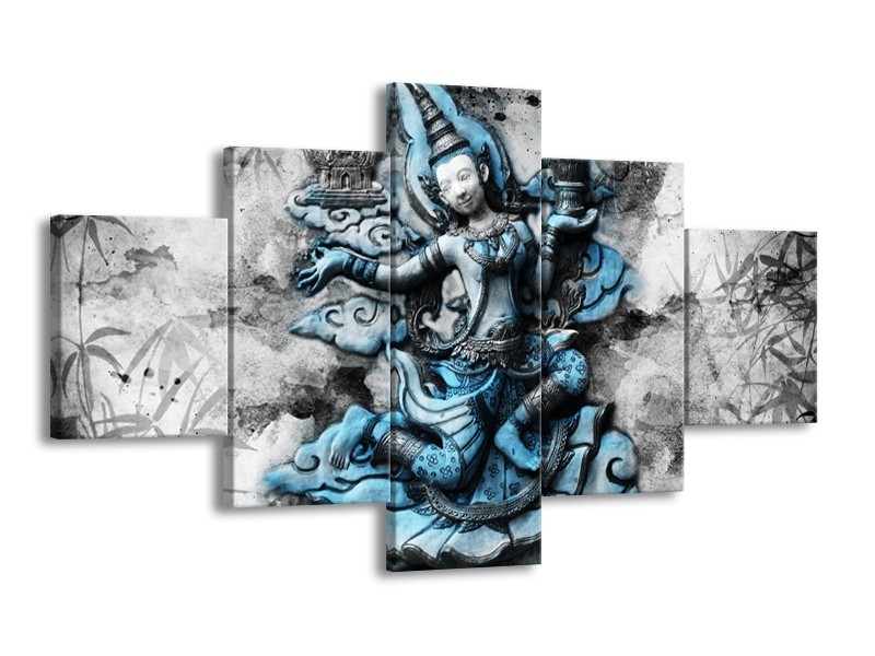 Glasschilderij Boeddha, Beeld | Blauw, Grijs, Zwart | 125x70cm 5Luik
