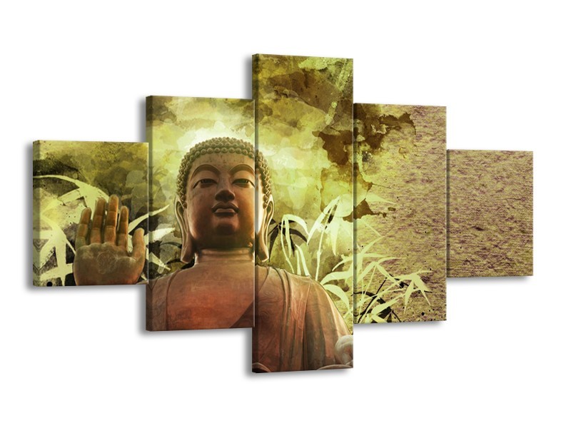 Glasschilderij Boeddha, Beeld | Bruin, Groen | 125x70cm 5Luik