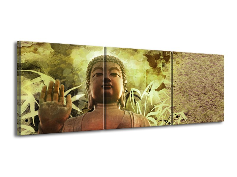 Glasschilderij Boeddha, Beeld | Bruin, Groen | 150x50cm 3Luik