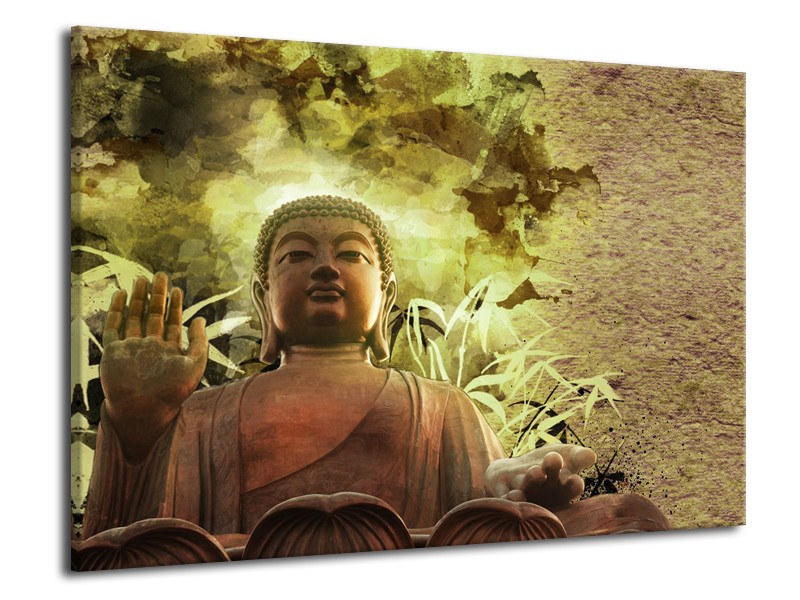 Glasschilderij Boeddha, Beeld | Bruin, Groen | 70x50cm 1Luik