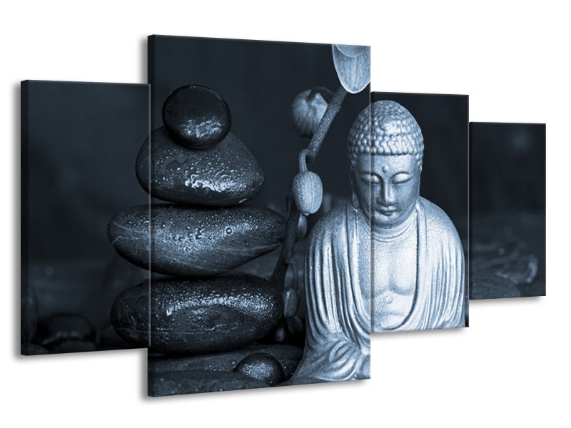 Glasschilderij Boeddha, Stenen | Blauw, Grijs, Zwart | 160x90cm 4Luik