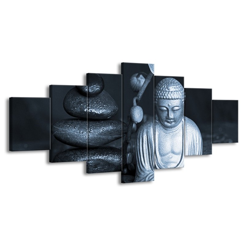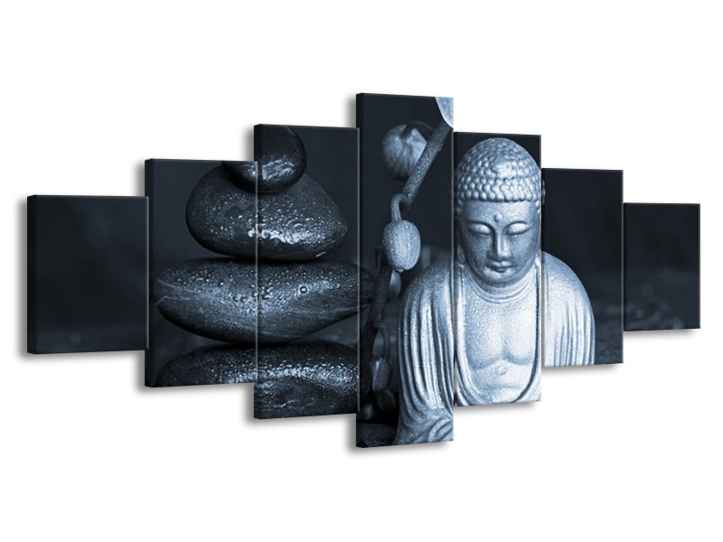 Glasschilderij Boeddha, Stenen | Blauw, Grijs, Zwart | 210x100cm 7Luik