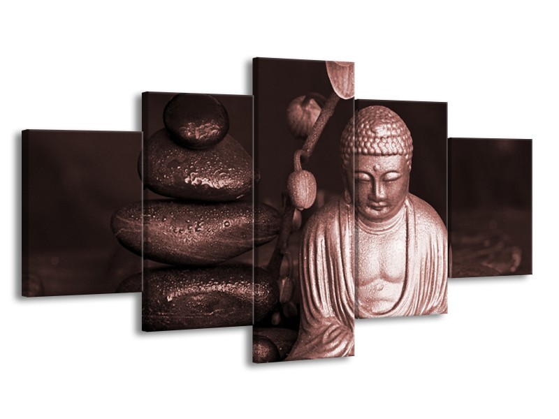Glasschilderij Boeddha, Stenen | Bruin, Rood, Zwart | 150x80cm 5Luik
