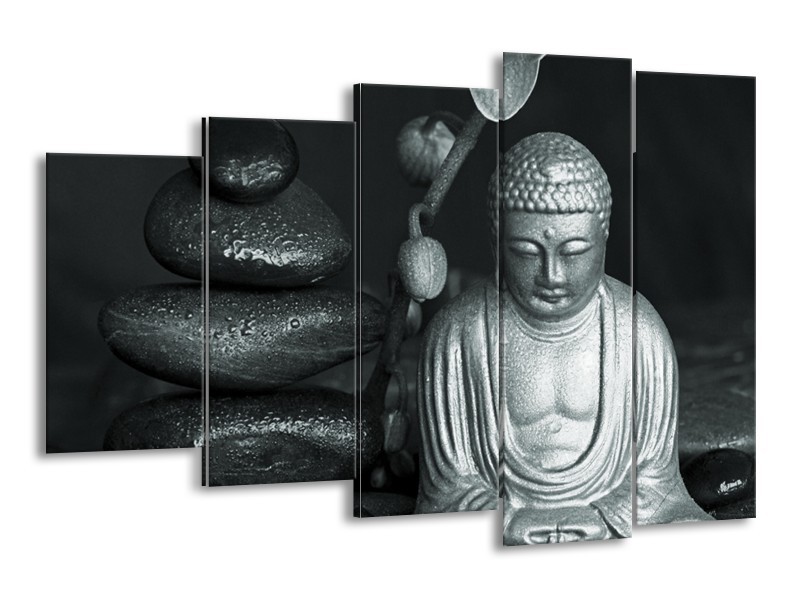 Glasschilderij Boeddha, Stenen | Grijs, Groen, Zwart | 150x100cm 5Luik
