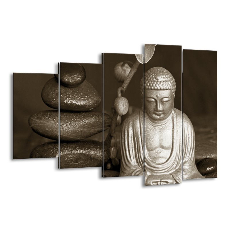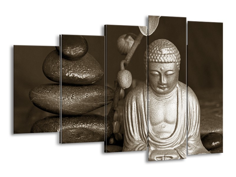Glasschilderij Boeddha, Stenen | Sepia, Bruin | 150x100cm 5Luik