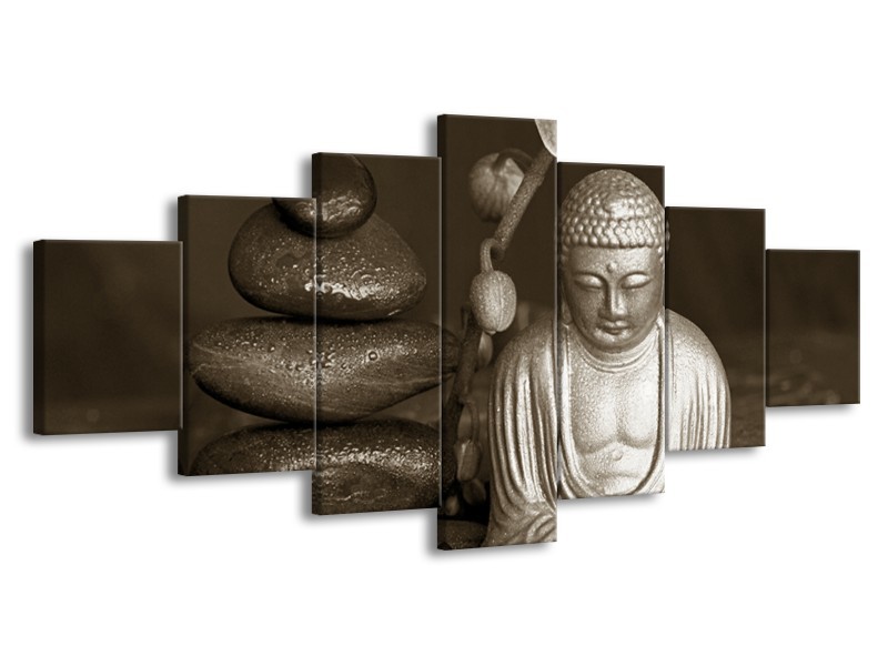 Glasschilderij Boeddha, Stenen | Sepia, Bruin | 210x100cm 7Luik