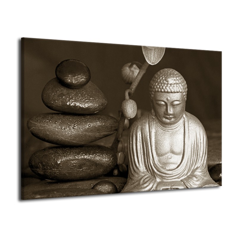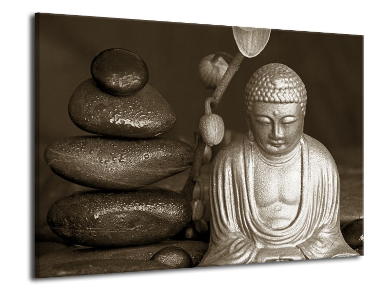 Glasschilderij Boeddha, Stenen | Sepia, Bruin | 70x50cm 1Luik