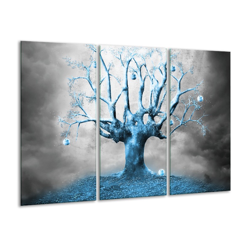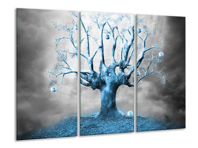 Glasschilderij Boom, Abstract | Blauw, Grijs, Wit | 120x80cm 3Luik