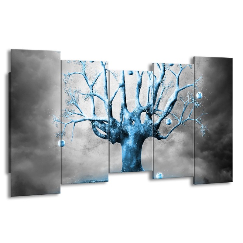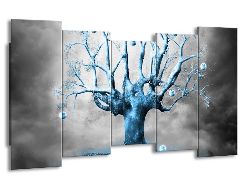 Glasschilderij Boom, Abstract | Blauw, Grijs, Wit | 150x80cm 5Luik