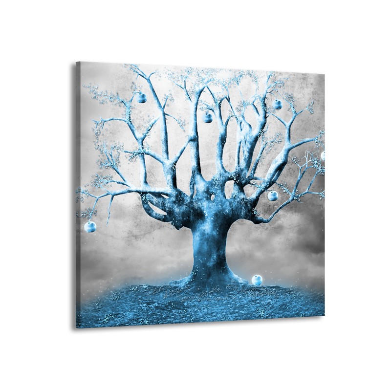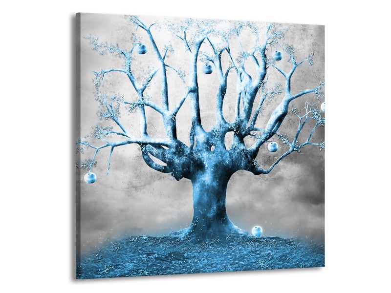 Glasschilderij Boom, Abstract | Blauw, Grijs, Wit | 70x70cm 1Luik
